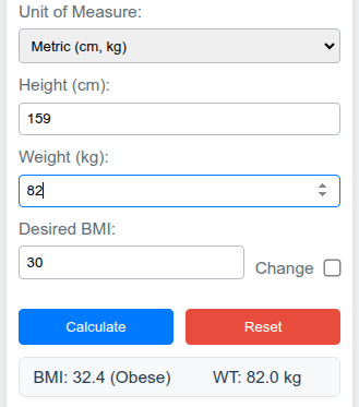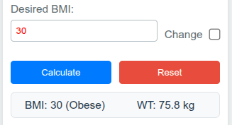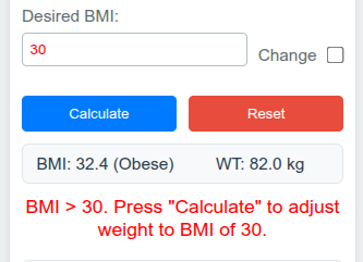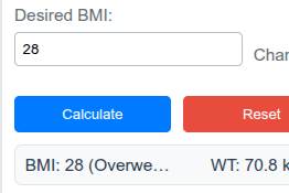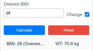 Check the change box if a different BMI is needed. Such as, wanting to know how much weight is needed for a desired BMI: 28.