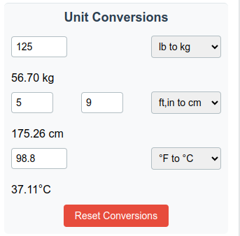 Type in measurement that you want to convert and the converted value will display below. Use menu on right to convert in the other direction